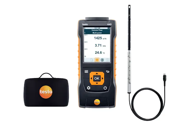 - Dụng cụ đo tốc độ gió và chất lượng không khí IAQ Testo 440 0563 4402, 3 pin AA, cáp USB và bảng ghi chứng nhận hiệu chuẩn (0560 4401).