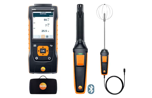 - Bộ dụng cụ để đo độ chiếu sáng tại nơi làm việc, ví dụ như trong văn phòng hoặc khu vực sản xuất. Giữ dụng cụ đo tốc độ gió và chất lượng không khí IAQ Testo 440 0563 4402 và một đầu dò lux an toàn trong hộp. Vì vậy, bạn có thể bắt đầu công việc ngay lập tức!