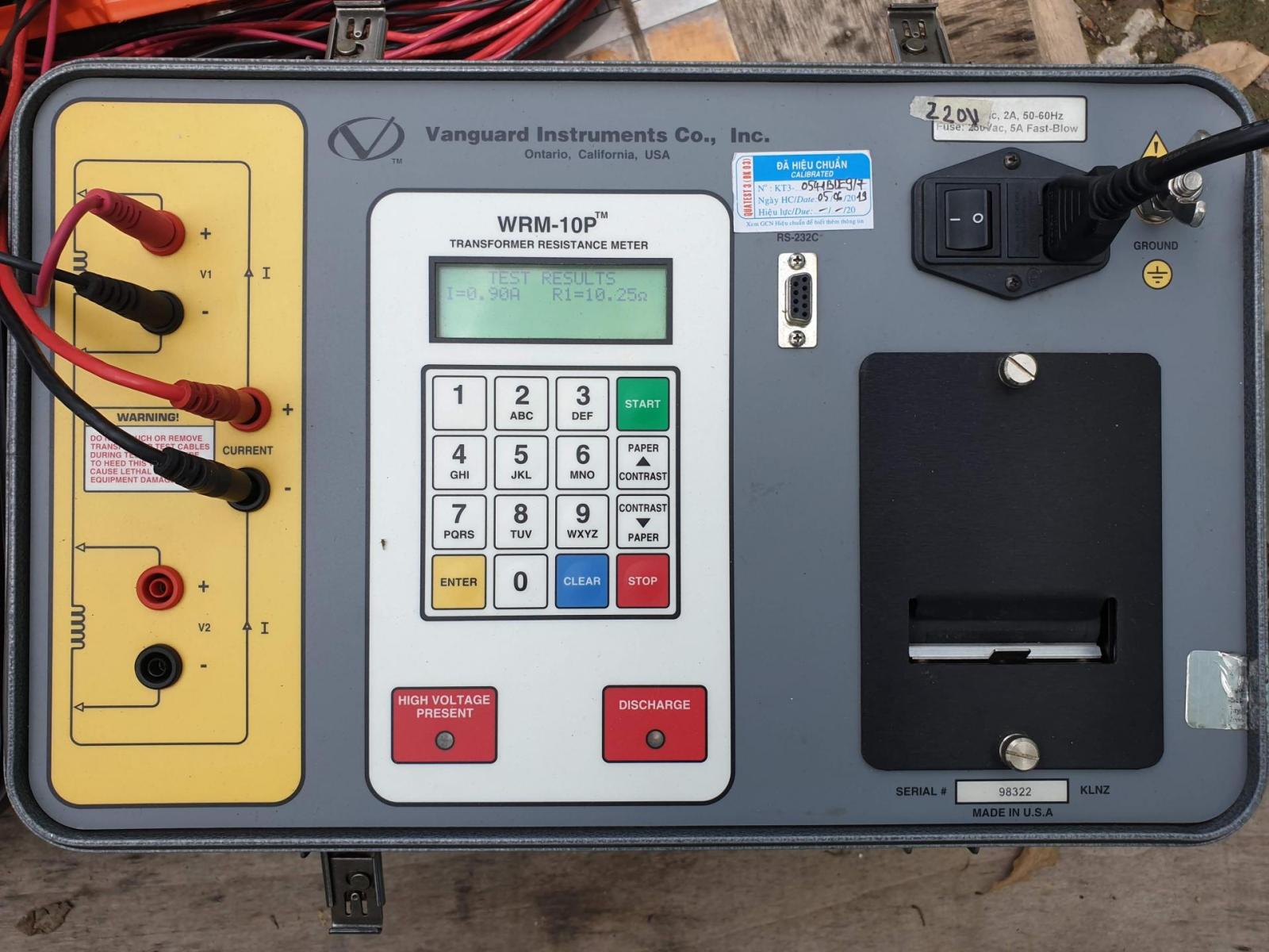 - Đợi một vài phút để dòng điện chạy trong cuộn dây của máy biến áp đạt đến trạng thái ổn định. Khi có kết quả sẽ được hiển trị trên màn hình máy đo điện trở 1 chiều.