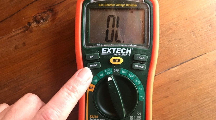 - Nếu mạch không thông suốt, thì sẽ không có tiếng “bíp” và đồng hồ hiển thị “OL” hoặc giá trị điện trở lớn.