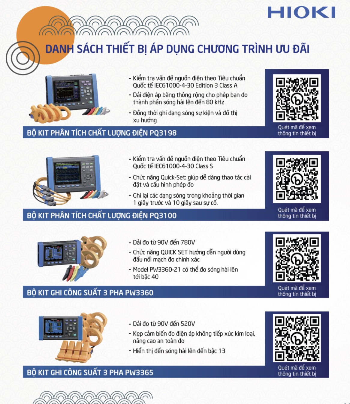 Khi mua 01 Thiết Bị Đo Cầm Tay Thông Minh HIOKI hoặc 01 Thiết bị Ghi Công Suất, Phân Tích Chất Lượng Điện HIOKI, Quý Khách hàng sẽ được tặng một phần quà trị giá từ 600,000 VNĐ.