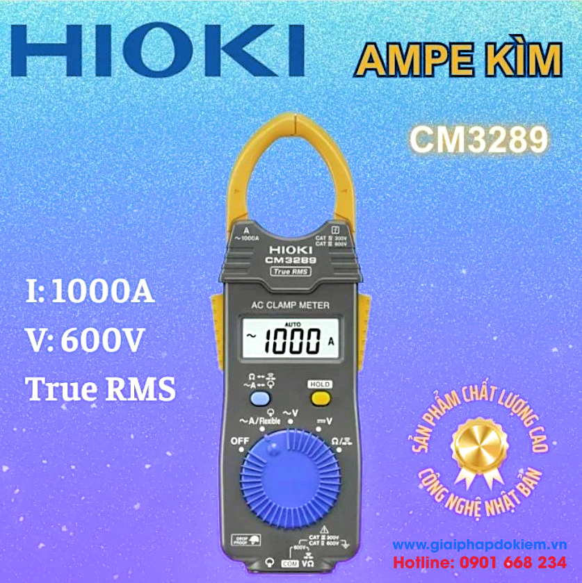 Ampe kìm Hioki CM3289 là một thiết bị đo lường dòng điện xoay chiều AC, được ứng dụng phổ biến để đo lường các hệ thống điện khác nhau trong các ngành công nghiệp, xây dựng và bảo trì hệ thống điện. Đây là một trong những dòng sản phẩm nổi bật của thương hiệu sản xuất và cung cấp thiết bị đo lường điện hàng đầu thế giới Hioki, chỉ sau dòng ampe kìm Hioki 3280-10F. Công dụng chính của ampe kìm Hioki CM3289 là đo cường độ dòng điện xoay chiều lên đến 1000 A bằng công nghệ đo giá trị hiệu dung thực True RMS tiên tiến nhất.