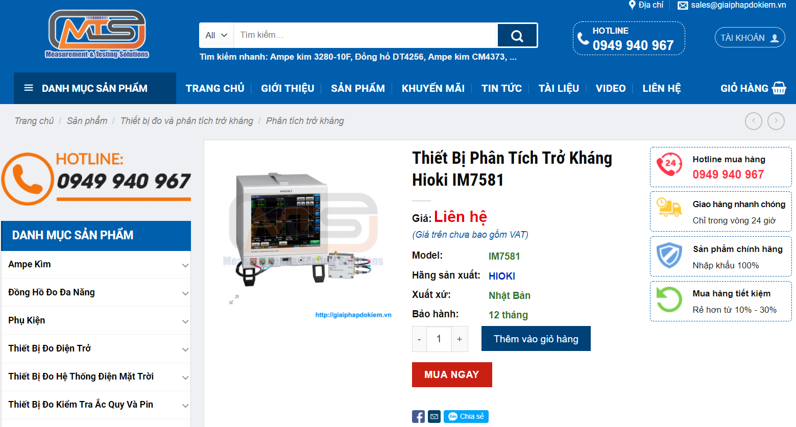 Giải Pháp Đo Kiểm đã có nhiều năm kinh nghiệm kinh doanh thiết bị đo lường, sản phẩm của chúng tôi chủ yếu xuất xứ từ Nhật Bản nên luôn đáp ứng yêu cầu về chất lượng, hiệu quả sử dụng, tuổi thọ… IM7581 là một trong những dòng sản phẩm thiết bị đo và phân tích trở kháng của hãng Hioki hiện đang được thị trường ưa chuộng nhờ vào những tính năng nổi bật như đã đề cập trên.