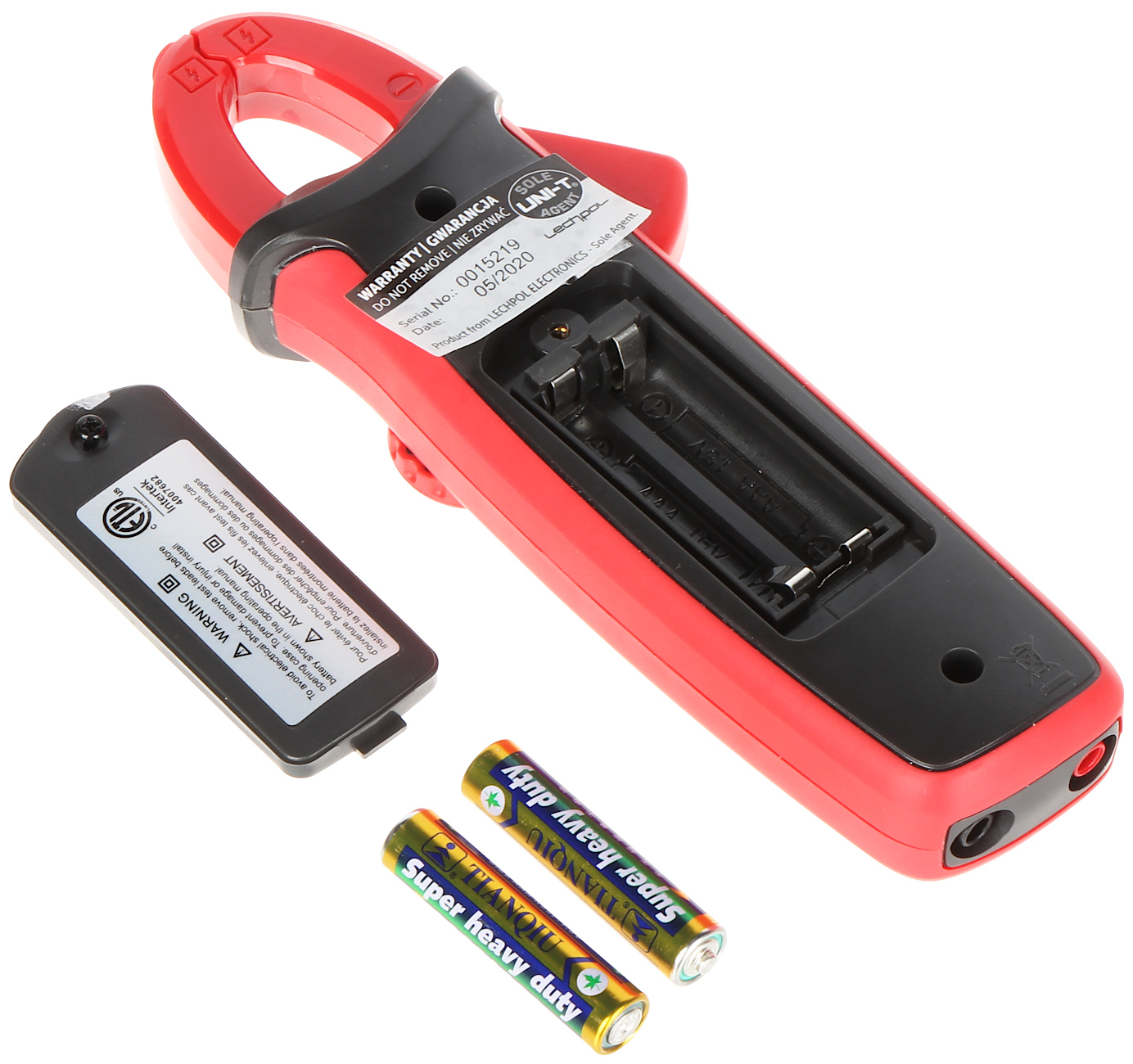 Thiết bị sử dụng 2 pin 1.5V (R03) và có tính năng tự động tắt nguồn, giúp tiết kiệm pin. Sản phẩm đi kèm với pin và dây đo, đảm bảo sẵn sàng sử dụng.
