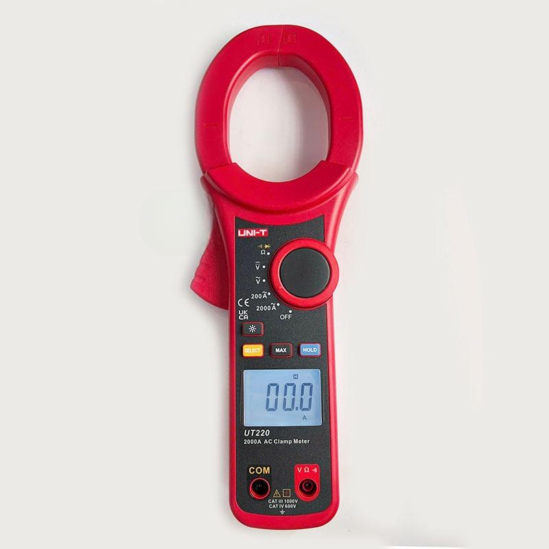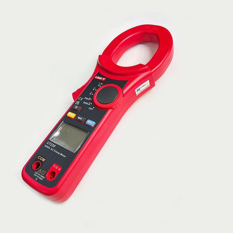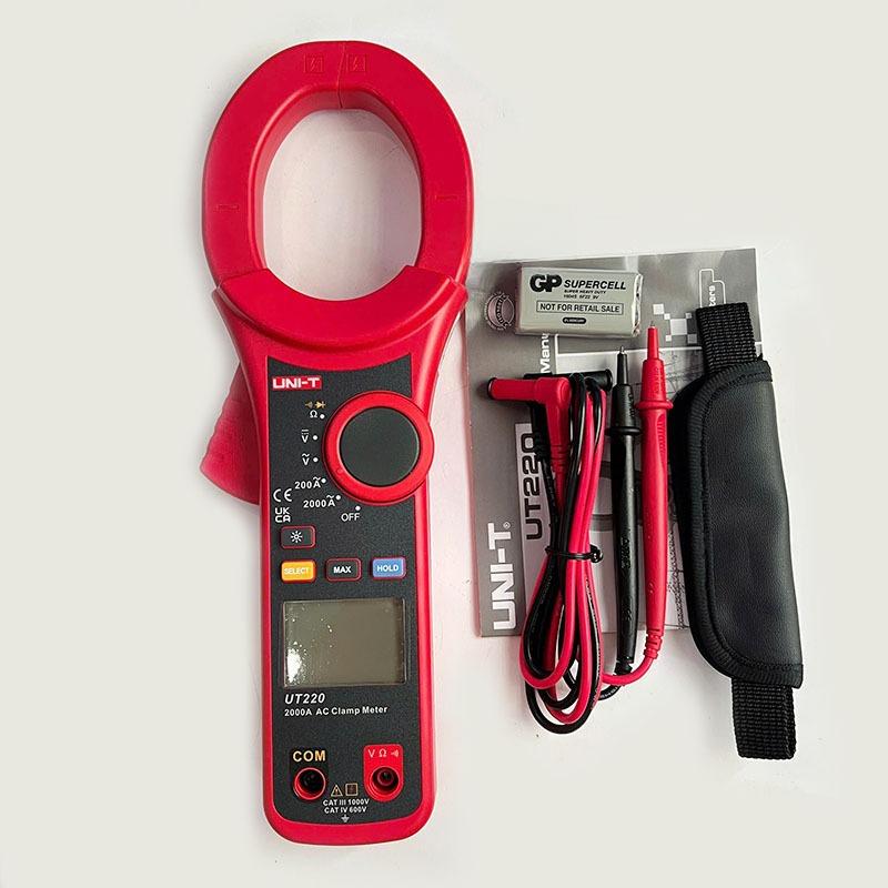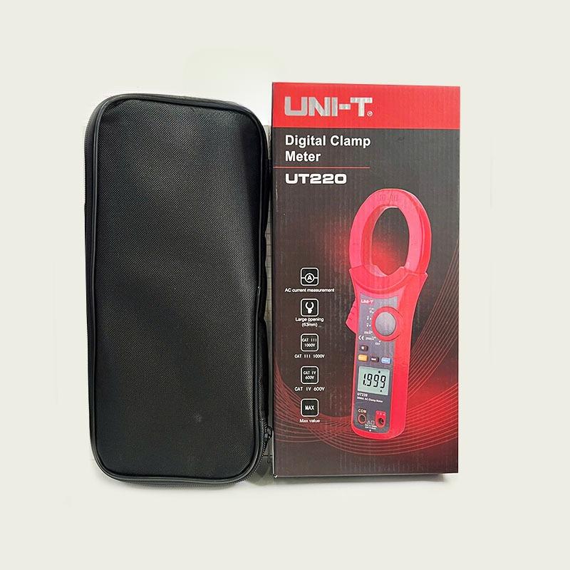 Ampe kìm UNI-T UT220 là thiết bị đo lường chuyên dụng cho phép người dùng đo dòng điện AC lên đến 2000A, điện áp AC, công suất, điện trở, tần số, diode, thông mạch, đo nhiệt độ. Máy sử dụng công nghệ đo True RMS tiên tiến để đo chính xác giá trị dòng điện và điện áp dạng sóng phi hình sin. UT220 được trang bị màn hình LCD lớn hiển thị rõ ràng các thông số đo lường, đèn pin, chức năng ghi giá trị MAX/MIN/Peak/Relative, chức năng đo dòng điện rò rỉ AC. Máy có thiết kế nhỏ gọn, trọng lượng nhẹ, dễ dàng mang theo và sử dụng.