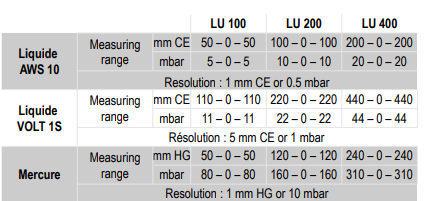 - LU 200: 100 – 0 – 100 mm CE | 10 – 0 – 10 mbar