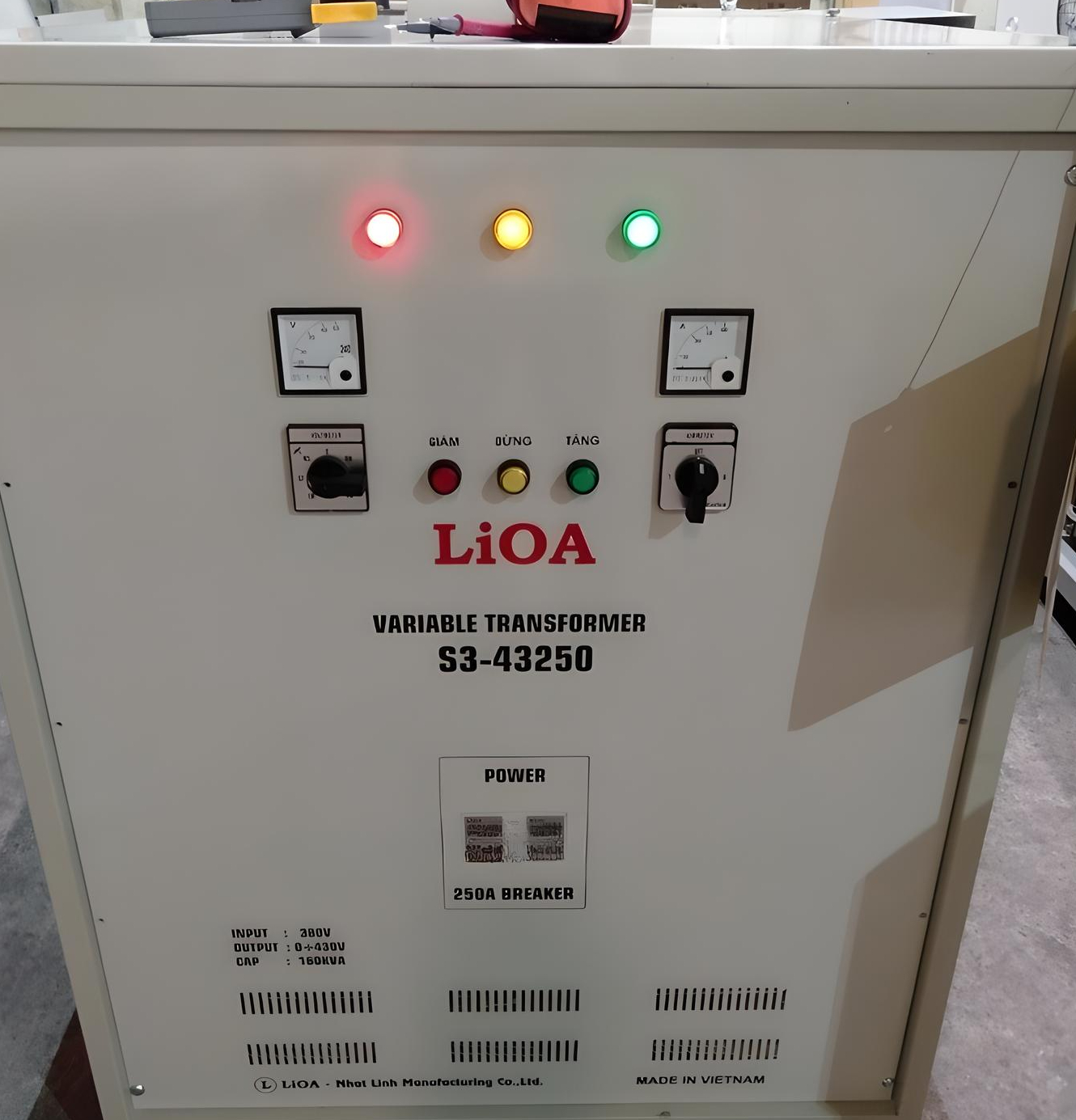 - Máy biến áp LiOA vô cấp S3-43250 là một trong số sản phẩm biến áp vô cấp 3 pha trên thị trường, được sản xuất và phân phối bởi Công ty Cổ phần Công nghệ cao LiOA. Thiết bị này chuyên dùng cho các thí nghiệm, thử động cơ, mô tơ, thổi bóng đèn, cắt xốp…