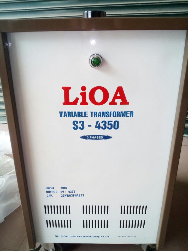 - Máy biến áp LiOA vô cấp S3-4350 là một trong số sản phẩm biến áp vô cấp 3 pha trên thị trường, được sản xuất và phân phối bởi Công ty Cổ phần Công nghệ cao LiOA. Thiết bị này chuyên dùng cho các thí nghiệm, thử động cơ, mô tơ, thổi bóng đèn, cắt xốp…