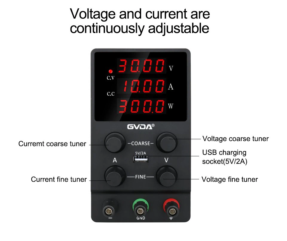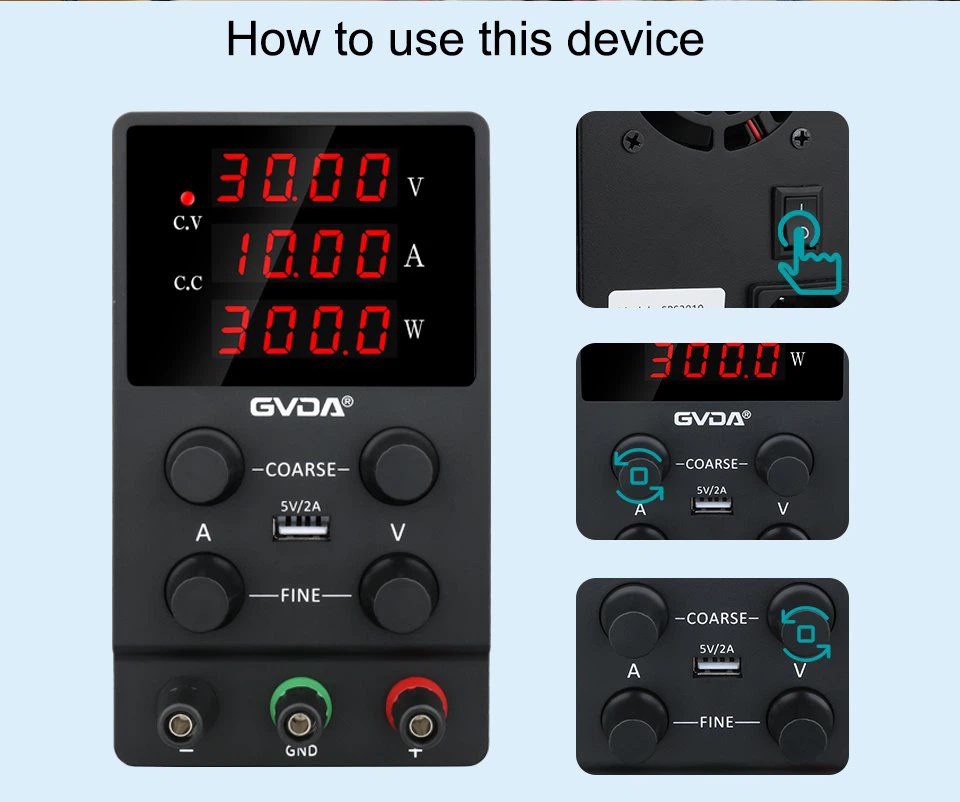 GVDA Đen USB 4 Chữ Số Có Thể Điều Chỉnh Phòng Thí Nghiệm Có Thể Điều Chỉnh Nguồn Điện DC 30V 10A Quy Định Chuyển Đổi Nguồn Điện 60V 5A 120V 3A