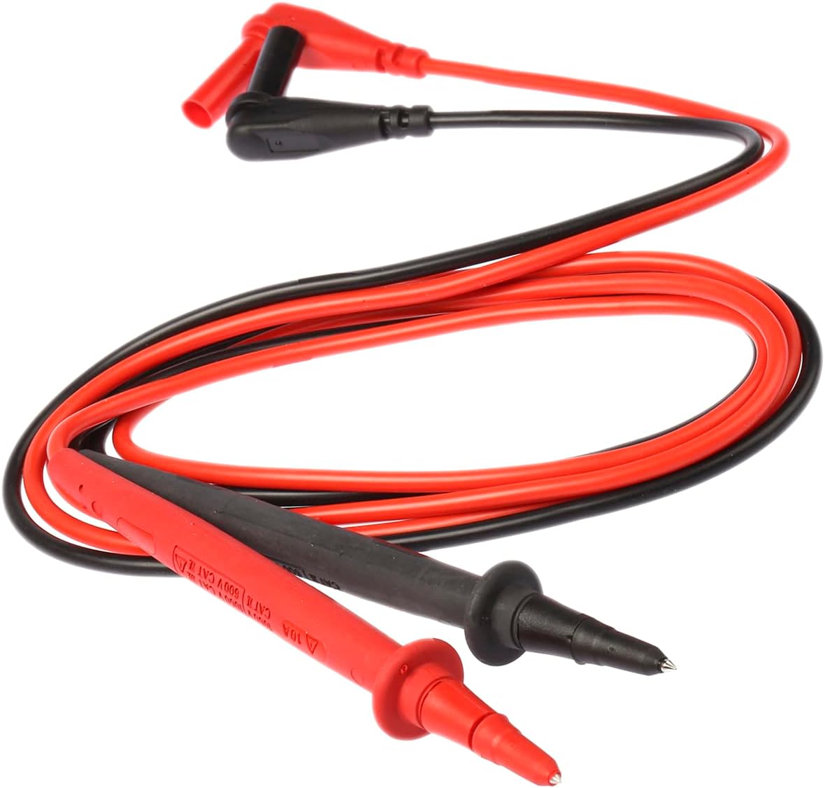 Một cặp dây đo silicon (màu đỏ, đen) có giắc cắm chuối 4 mm (0,16 in) được bọc góc vuông.