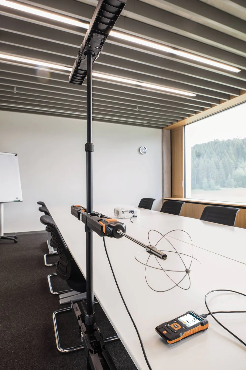 Để đo thuận tiện ở các độ cao khác nhau, chúng tôi khuyên bạn nên sử dụng chân máy đo của chúng tôi cho đo mức độ thoải mái (vui lòng đặt hàng riêng). Điều này giúp dễ dàng định vị các đầu dò nhiễu loạn tuân thủ các tiêu chuẩn.