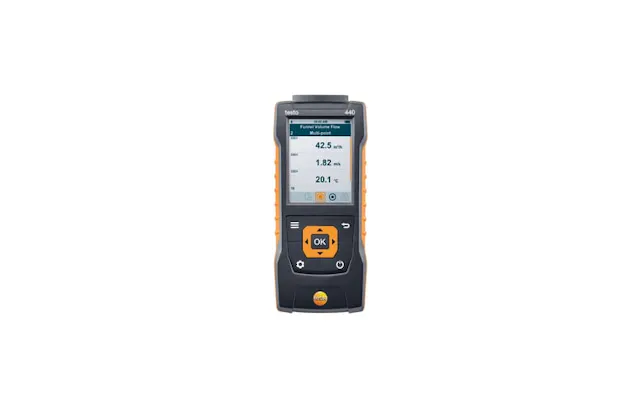 - Bộ dụng cụ để đánh giá chất lượng không khí trong nhà. Dụng cụ đo tốc độ không khí và chất lượng không khí trong nhà Testo 440 0563 4405 và cảm biến CO2 với Bluetooth® bao gồm cảm biến nhiệt độ và độ ẩm đều được cất giữ an toàn trong hộp. Bạn có thể bắt đầu công việc ngay lập tức!