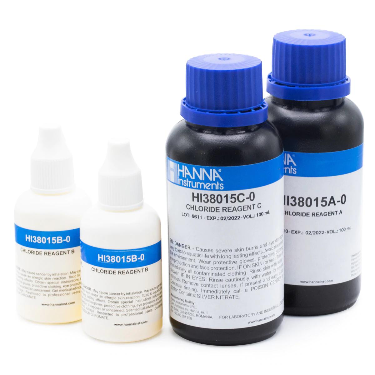 HI38015-100 cung cấp kèm thuốc thử cho 100 lần đo và đầy đủ phụ kiện.