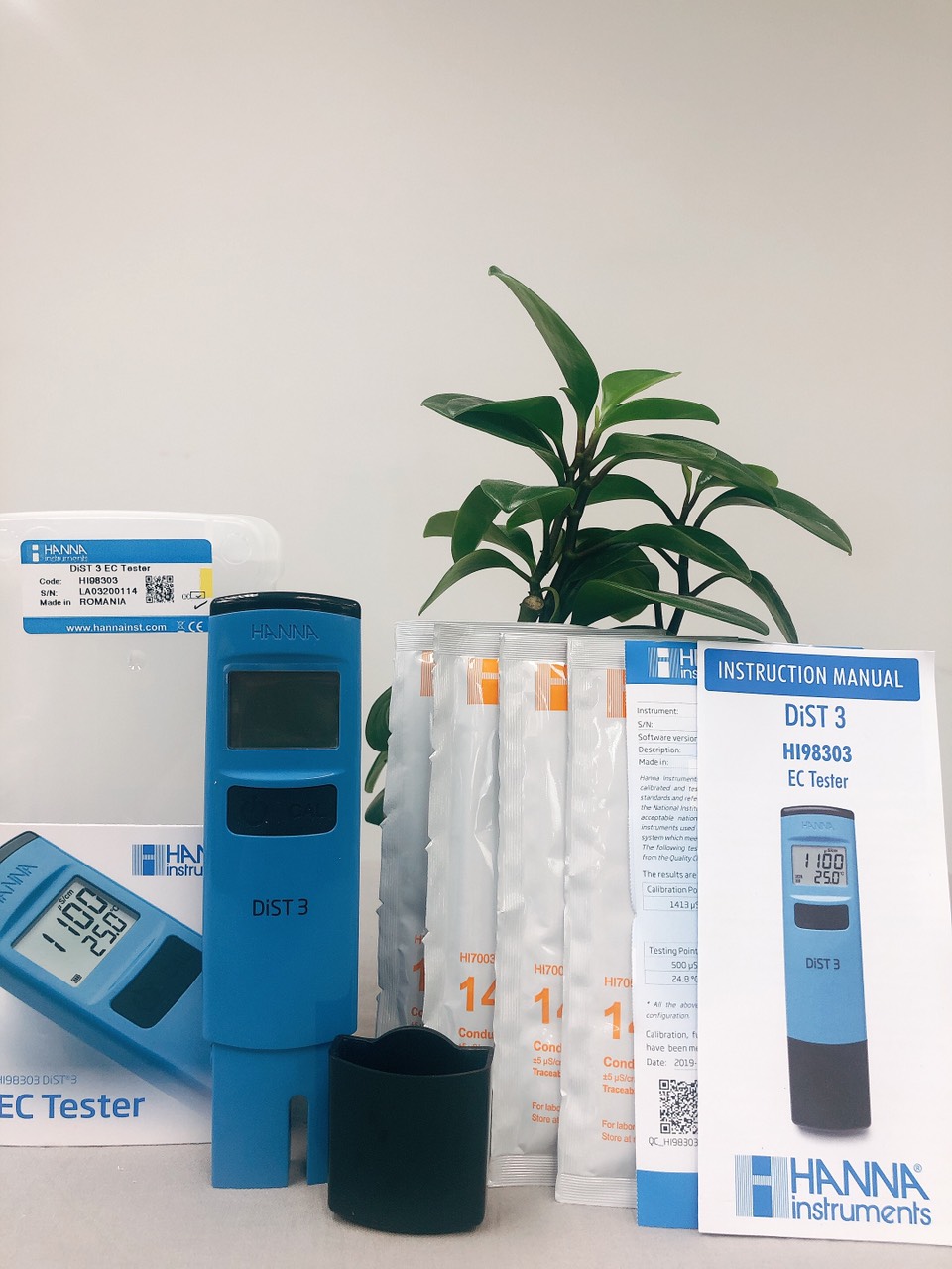 – 4 gói dung dịch 1413µS/cm cho 4 lần hiệu chuẩn máy.