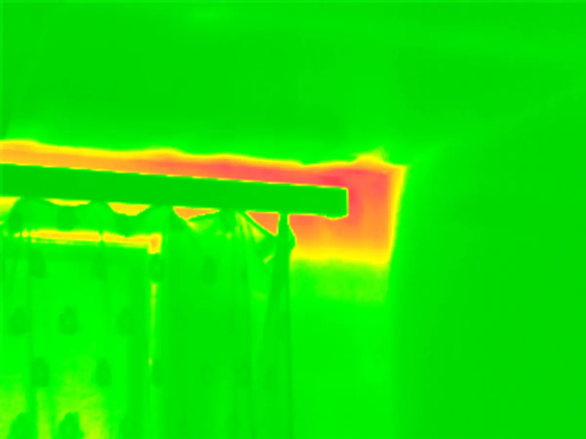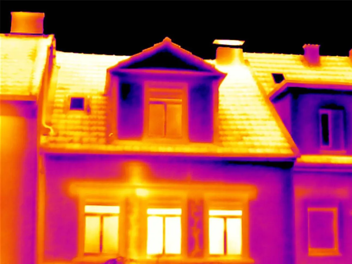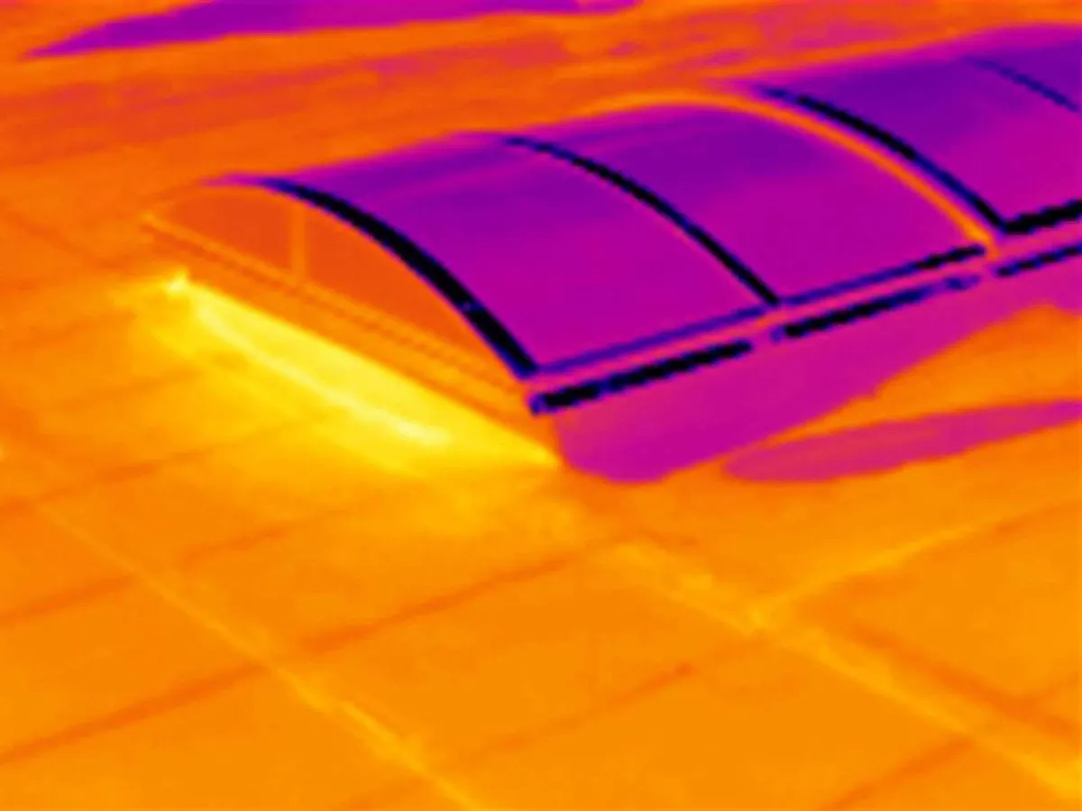- Phát hiện độ ẩm trên mái nhà: Dựa trên sự khác biệt về nhiệt độ (chẳng hạn như xảy ra chủ yếu ở mái bằng), thiết bị chụp ảnh nhiệt hiển thị các khu vực trên mái nhà có độ ẩm bịt kín hoặc lớp cách nhiệt bị hư hỏng.
