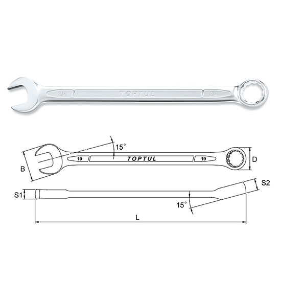 | AAEA1919 | . Size: 19mm . Chiều dài L: 278 mm . Kích thước đầu mở B: 40.2 mm . Kích thước đầu vòng D: 29.2 mm . Độ dày đầu mở S1: 8 mm . Độ dày đầu vòng S2: 12.4 mm | 156,000 |