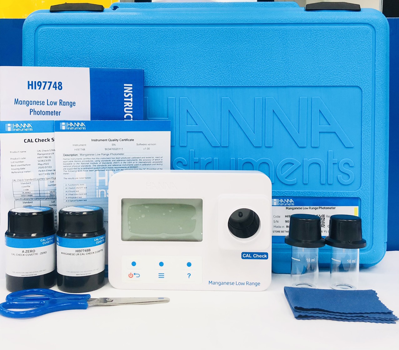 Tổng quan sản phẩm Combo Máy Đo Mangan Thang Thấp Kèm Dung Dịch Chuẩn CAL Check™ Hanna HI97748C