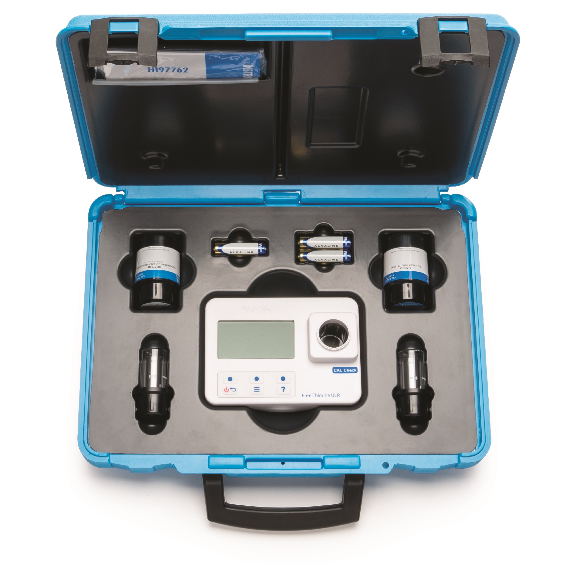 Tổng quan sản phẩm Combo Máy Quang Đo Clo Dư Thang Siêu Thấp Kèm Dung Dịch Chuẩn CAL Check™ Hanna HI97762C