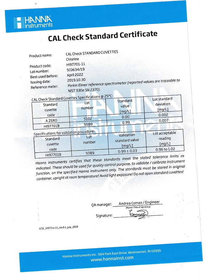 Combo Máy Quang Đo Clo Dư Trong Nước Sạch HI97701 Kèm Dung Dịch Chuẩn Máy Hanna HI97701C