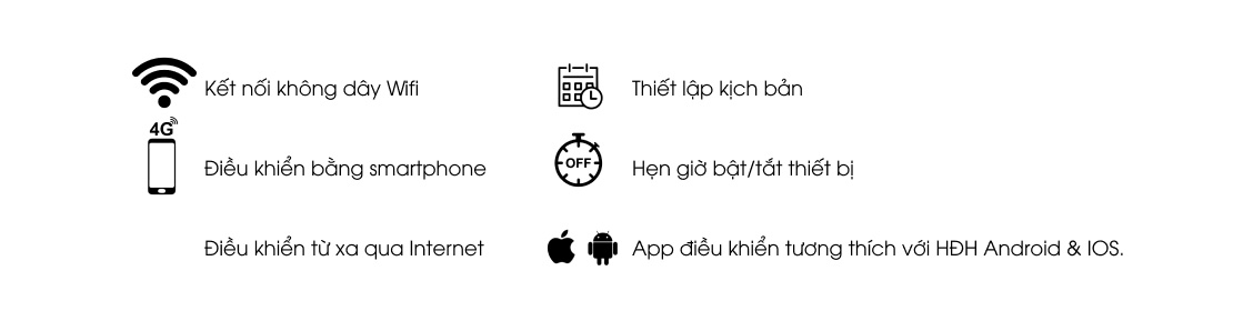 - Phần mềm điều khiển cài đặt trên Smartphone tương thích với hệ điều hành Android và IOS.