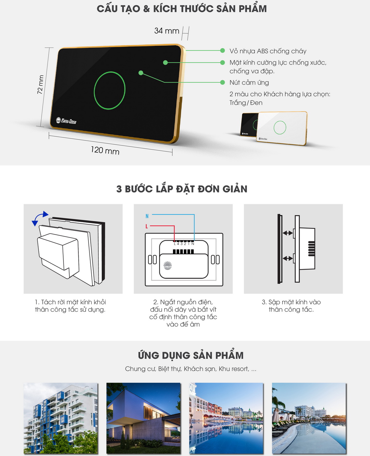 - Dễ dàng lắp đặt, sử dụng thay thế công tắc cơ truyền thống.