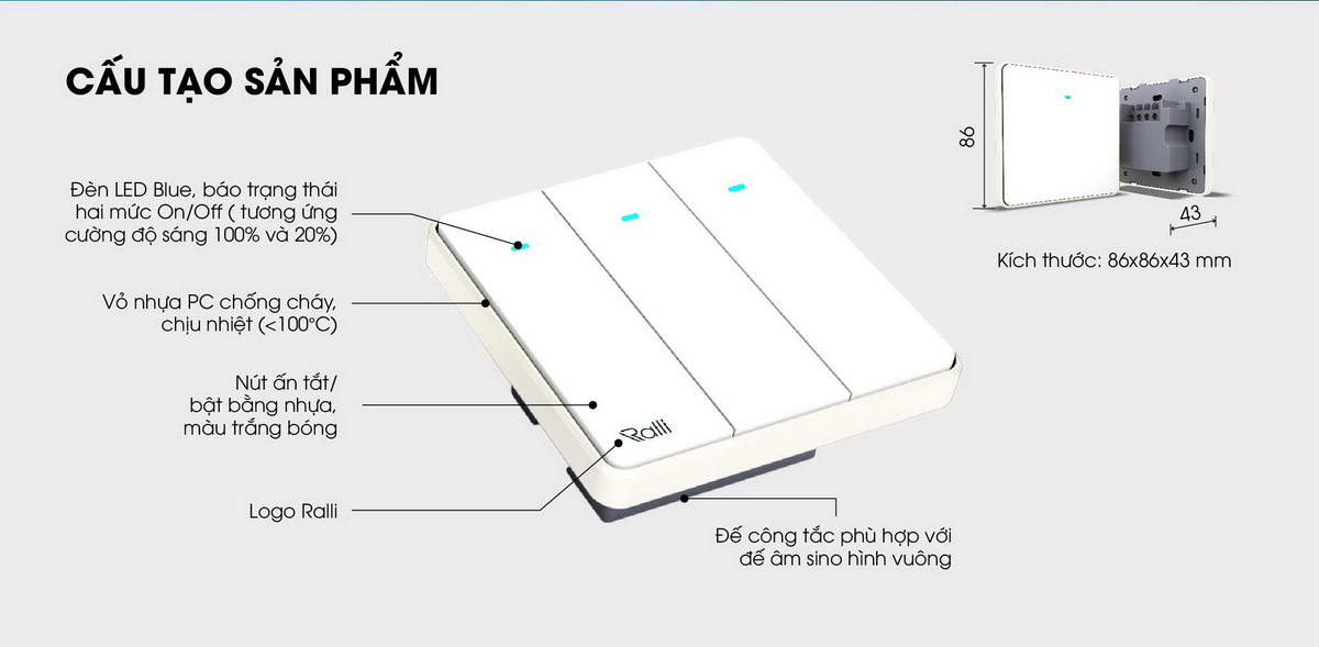 Công tắc cơ thông minh biến hệ thống điện trong nhà thành hệ thống thông minh. Nhờ kết nối không dây Bluetooth Mesh, bạn sẽ dễ dàng điều khiển nhà thông minh bằng smartphone qua Internet từ bất kỳ đâu: Tắt hệ thống đèn từ phòng ngủ hay bật/tắt hệ thống đèn khi không có ở nhà.