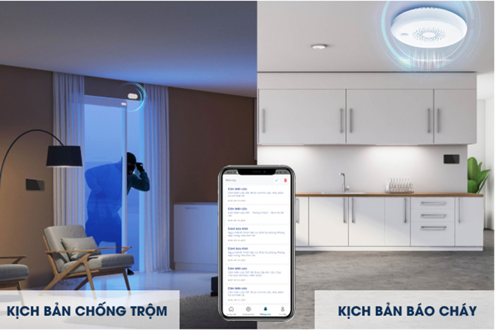 Công tắc cảm ứng thông minh khi kết hợp với các thiết bị khác trong ngôi nhà thông minh như đèn, cảm biến, công tắc cảm ứng điều khiển nóng lạnh, điều khiển rèm… có thể tạo thành các kịch bản khác nhau phù hợp với nhu cầu sử dụng.