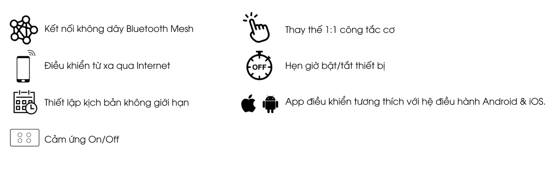 TÍNH NĂNG SẢN PHẨM CÔNG TẮC THÔNG MINH RẠNG ĐÔNG CTCU.BLE CN.03T