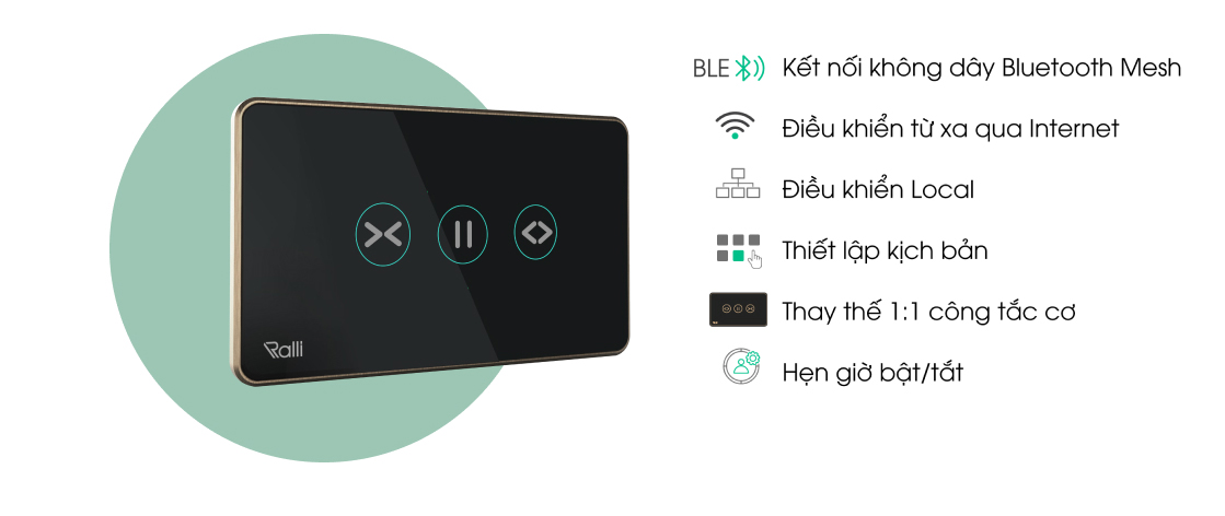 Với công tắc điều khiển rèm, bạn có thể điều khiển trực tiếp bằng 1 chạm trên ngay công tắc, điều khiển từ xa bằng smartphone mà không còn bận tâm khi ra khỏi nhà quên chưa đóng rèm hay điều khiển bằng giọng nói khi không rảnh tay điều khiển rèm.