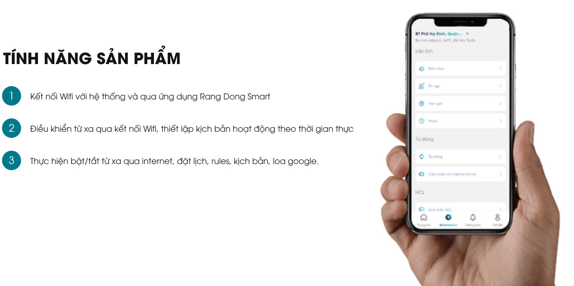 Đa dạng phương thức điều khiển ngôi nhà của bạn thông qua ứng dụng Rang Dong Smart: điều khiển trực tiếp, điều khiển từ xa qua smartphone, điều khiển bằng giọng nói,…