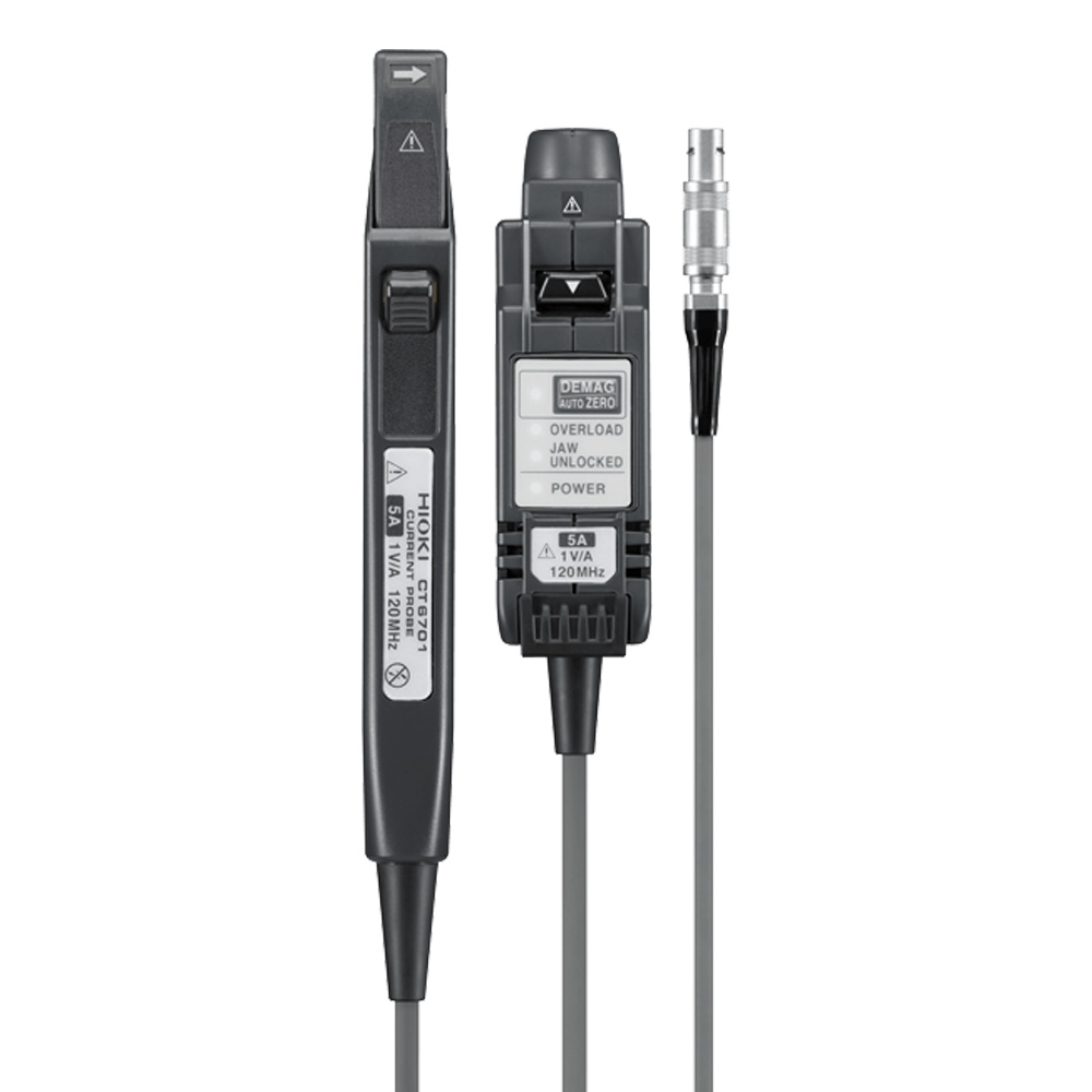 | Dimensions and mass Hioki CT6701 | Sensor: 155 mm (6.10 in)W × 18 mm (0.71 in)H × 26 mm (1.02 in)D, Terminator: 29 mm (1.14 in)W × 83 mm (3.27 in)H × 40 mm (1.57 in)D mm, Mass: 250 g (8.8 oz), Sensor cable BNC terminal: 1.5 m (4.92 ft), Power cable: 1 m (3.28 ft), Power plug: FFA.0S.304.CLAC37Y / LEMO inc. | |||||