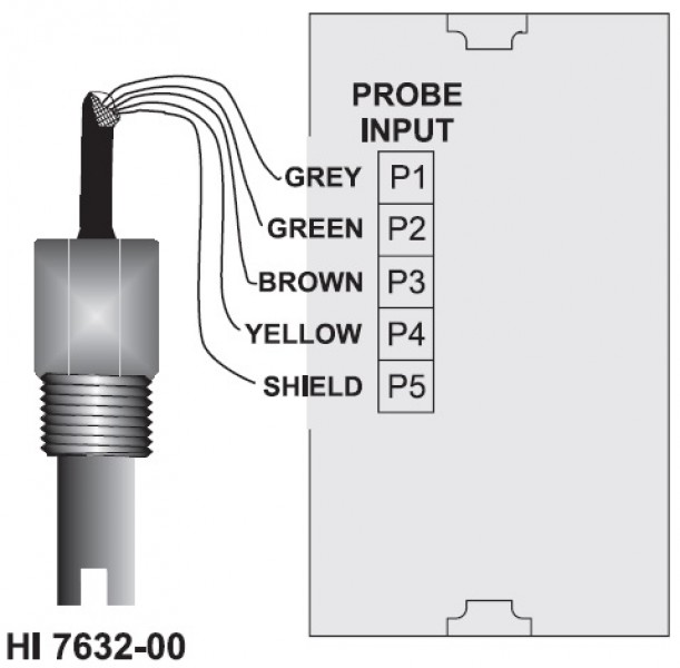 Kết nối ren NPT ½ ” của HI 7632 cho phép kết nối dễ dàng vào cổng ” T ” mà không cần thêm phụ kiện gì.