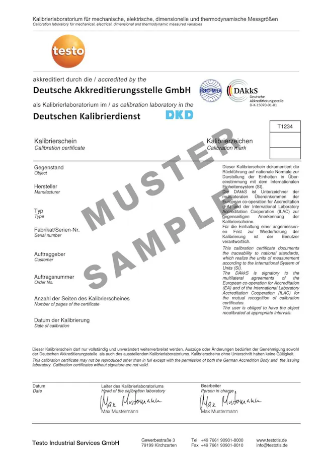 1 x đầu dò nhiệt độ không khí chắc chắn (loại TC K) với dây cáp cố định.