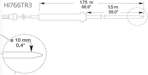 Tổng quan sản phẩm Đầu Dò Nhiệt Độ Xuyên Sâu Kiểu K Với Tay Cầm (1.5m) Hanna HI766TR3
