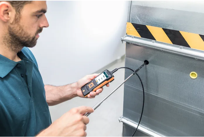 Ống dẫn gió: Sử dụng đầu dò dây nóng để đo tốc độ không khí và nhiệt độ không khí trong ống dẫn gió một cách đáng tin cậy. Tận dụng tính năng tính toán nhanh chóng lưu lượng thể tích: trong menu đo lường ‘lưu lượng thể tích’ của thiết bị đo tương thích (vui lòng đặt hàng riêng), cấu hình kích thước và hình dạng của tiết diện ống dẫn – thiết bị đo sẽ hiển thị ngay lập tức lưu lượng thể tích.