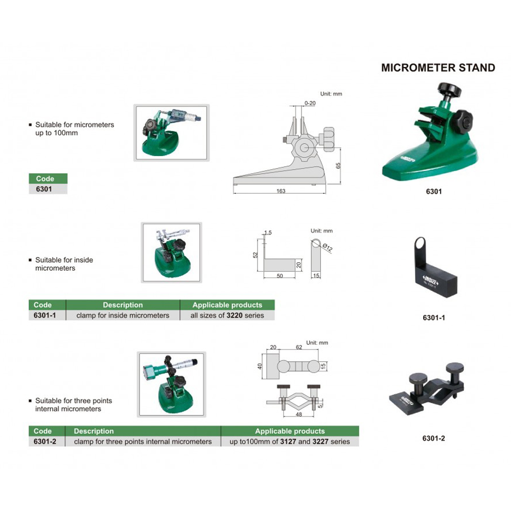 Thông Số Kỹ Thuật Của Đế kẹp panme INSIZE 6301
