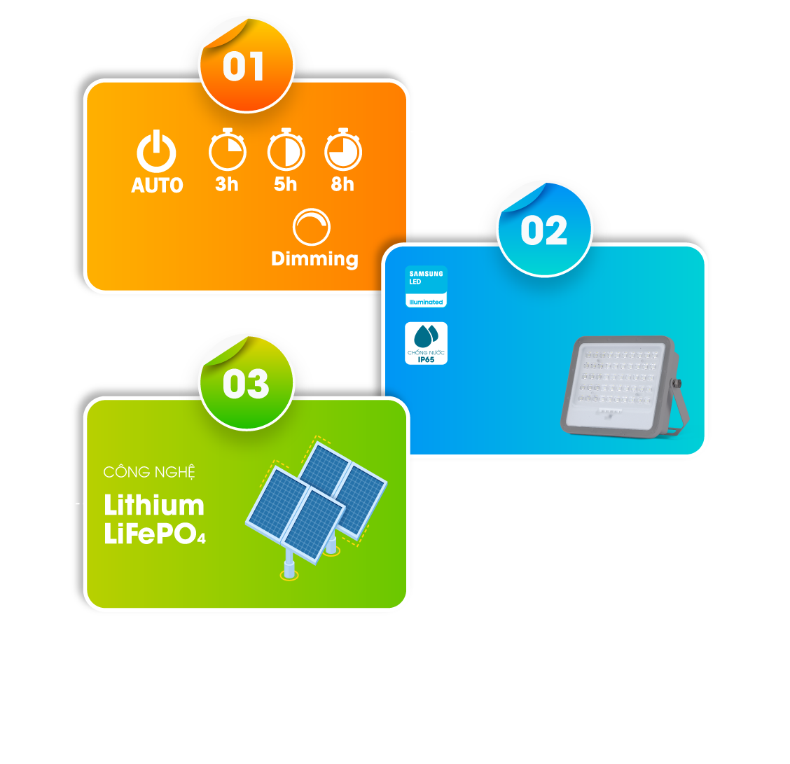 ƯU ĐIỂM SẢN PHẨM Đèn chiếu pha năng lượng mặt trời CP02.SL.RF 40W