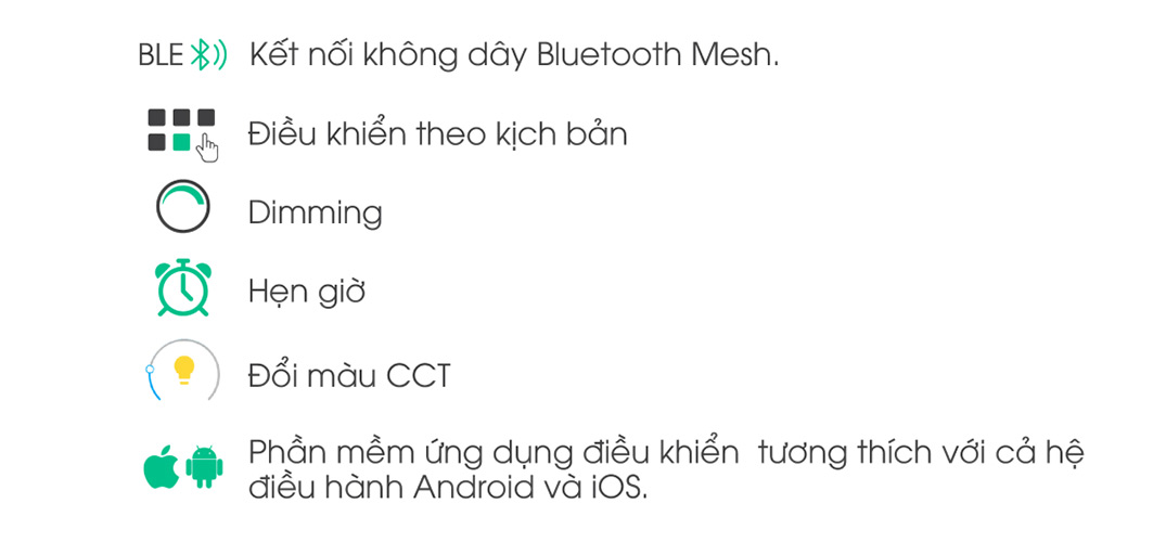 - Phần mềm điều khiển cài đặt trên Smartphone tương thích với hệ điều hành Android và IOS.