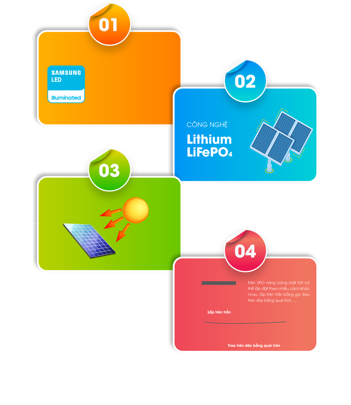 Tuổi thọ đèn cao 30.000 giờ (~5 năm sử dụng), tấm pin năng lượng mặt trời > 20 năm.