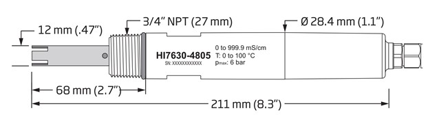 Tổng quan sản phẩm Điện cực EC/TDS, nhiệt độ, cổng kết nối RS485 dùng cho bộ điều khiển HI510 Hanna HI7630-Y8ZZ