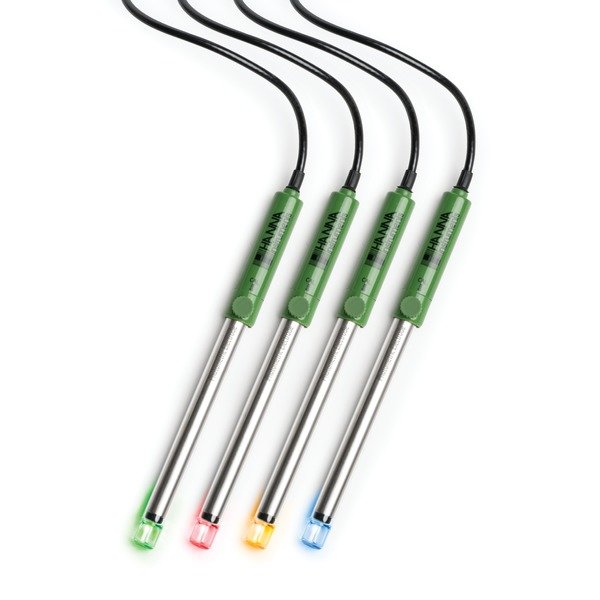 Với đường kính 12 mm và chiều dài tiêu chuẩn 120 mm, các điện cực quang này dễ dàng phù hợp với các giá đỡ điện cực. Các đầu dò này có cổng kết nối BNC đa năng được sử dụng làm đầu vào đo điện thế trên máy chuẩn độ và bộ lấy mẫu tự động của Hanna.