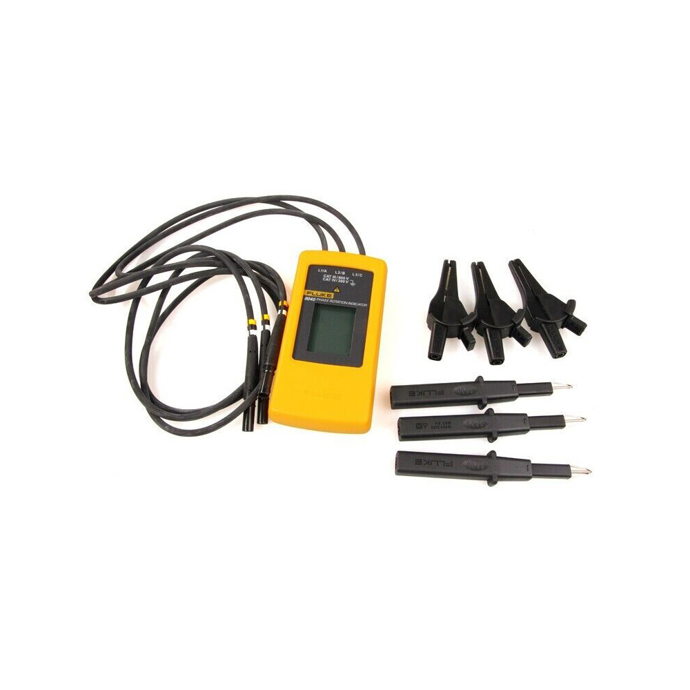 Đồng hồ đo thứ tự pha Fluke 9040 giúp xác định nhanh chóng chuỗi pha và có thể đo được điện áp lên tới 700 V, thích hợp cho các ứng dụng trong lĩnh vực thương mại và công nghiệp. Các đầu dò thử nghiệm đi kèm có thiết kế kẹp đa dạng, đảm bảo an toàn khi tiếp xúc ngay cả trong các ổ cắm công nghiệp.