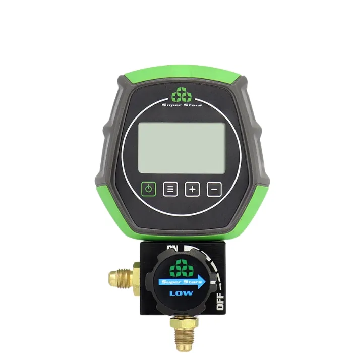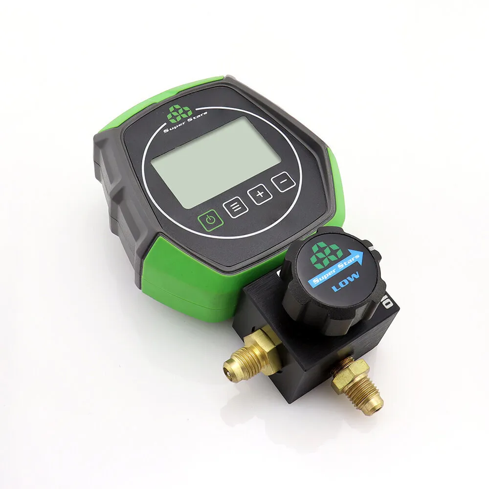 – Đồng hồ gas đơn điện tử áp cao Super Stars ST-B168DH là thiết bị chuyên dụng giúp đo áp suất và hỗ trợ nạp gas cho các hệ thống điện lạnh.
