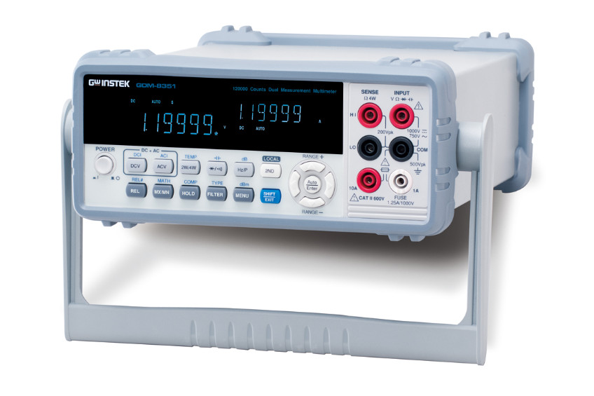 GW Instek giới thiệu Đồng hồ vạn năng đo kép 5 1/2 chữ số─ GDM-8351 hoàn toàn mới để thay thế GDM-8251A cùng loại. GDM-8351 có màn hình kép VFD, số đếm tối đa 120.000, độ chính xác điện áp DC cơ bản 0,012% và đầu nối USB/RS232C để cung cấp cho người dùng độ chính xác của phép đo, quan sát dữ liệu rõ ràng và kết nối thuận tiện với máy tính cá nhân.