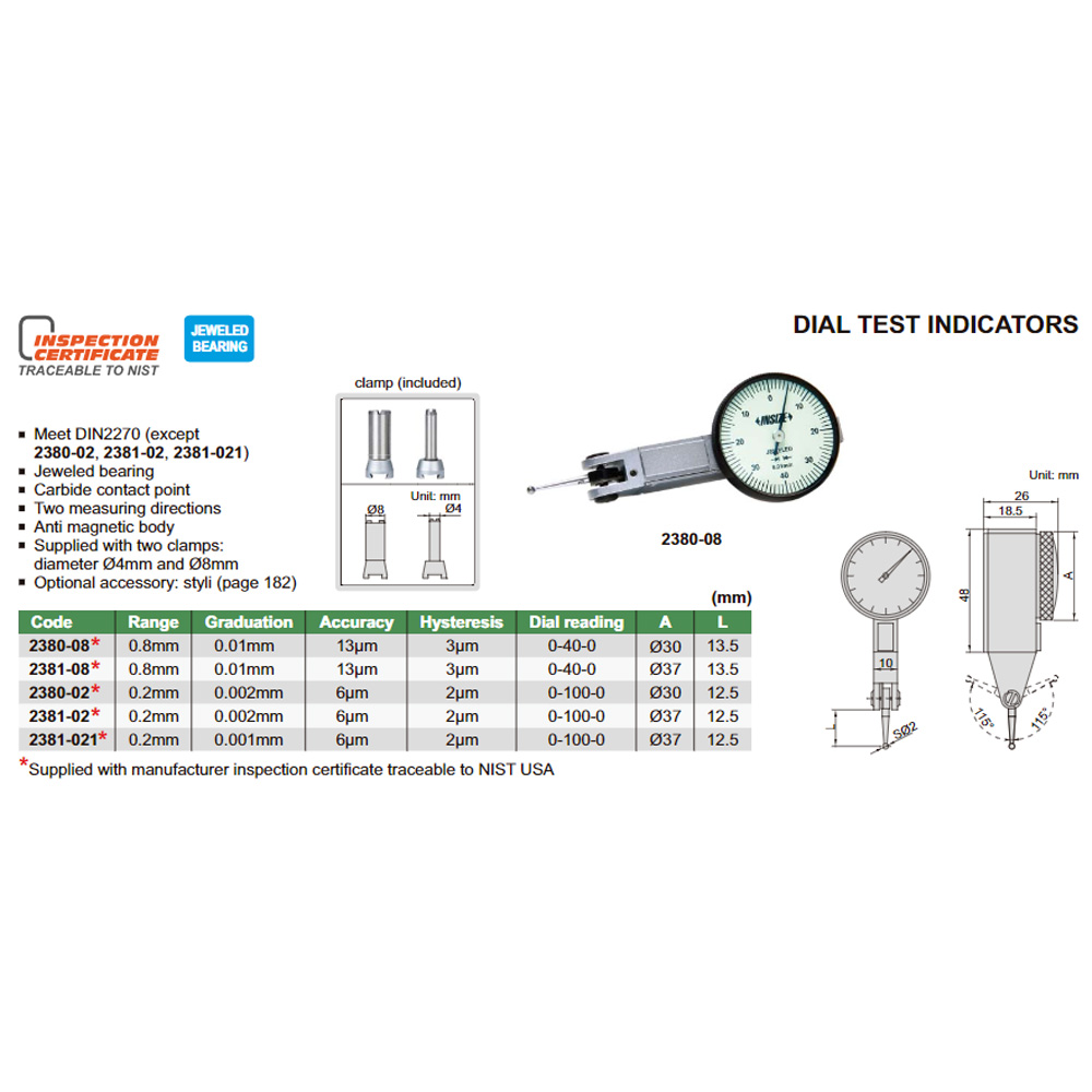 Thông Số Kỹ Thuật Của Đồng hồ so chân gập Insize 2380-08