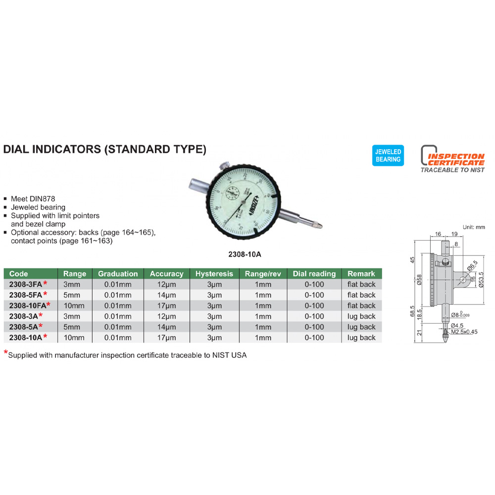 Thông Số Kỹ Thuật Của Đồng hồ so Insize 2308-10A