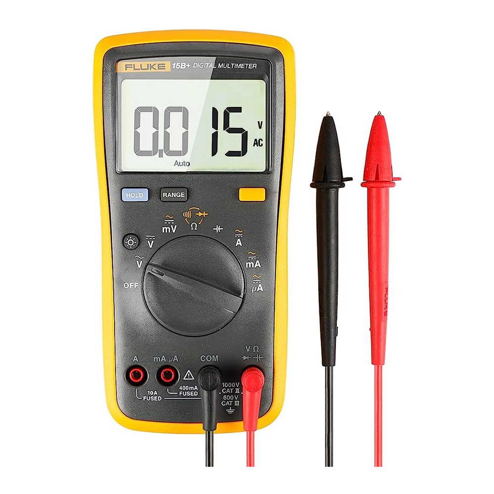 Fluke 15B+ là đồng hồ đo điện chuyên dụng với khả năng đo điện áp AC và DC lên đến 4000V. Ngoài ra, thiết bị còn tích hợp nhiều chức năng khác như đo millivolt AC/DC, kiểm tra diode, đo điện trở ohm, đo điện dung, và đo dòng điện AC/DC từ μA, mA đến A.