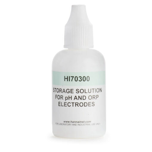 HI70300 được làm từ hóa chất cấp thuốc thử có thể được sử dụng để đảm bảo hiệu suất tối ưu của điện cực pH và ORP. Bắt buộc bảo quản điện cực pH trong dung dịch để giữ cho màng thủy tinh của điện cực pH ngậm nước. Tốt nhất nên sử dụng dung dịch bảo quản; * Không bảo quản điện cực pH hoặc ORP trong nước cất hoặc nước khử ion. Điều này sẽ làm giảm tuổi thọ của cảm biến. Dung dịch bảo quản Hanna Instruments được pha chế đặc biệt để giảm thiểu sự phát triển của vi sinh vật và ngăn chặn bất kỳ ảnh hưởng nào của sự khuếch tán / thẩm thấu từ việc bảo quản đầu dò trong dung dịch có chất điện phân tham chiếu bên trong đậm đặc. Bảo quản các điện cực pH và / hoặc ORP trong dung dịch bảo quản cũng sẽ giữ cho mối nối luôn thông thoáng. Duy trì cảm biến và mối nối ngậm nước sẽ giúp đảm bảo phép đo nhanh chóng và đáng tin cậy. Trong trường hợp điện cực pH được rửa bằng một trong các dung dịch rửa điện cực HANNA, chúng tôi khuyên bạn nên ngâm điện cực trong dung dịch bảo quản ít nhất 1 tiếng trước khi đo.
