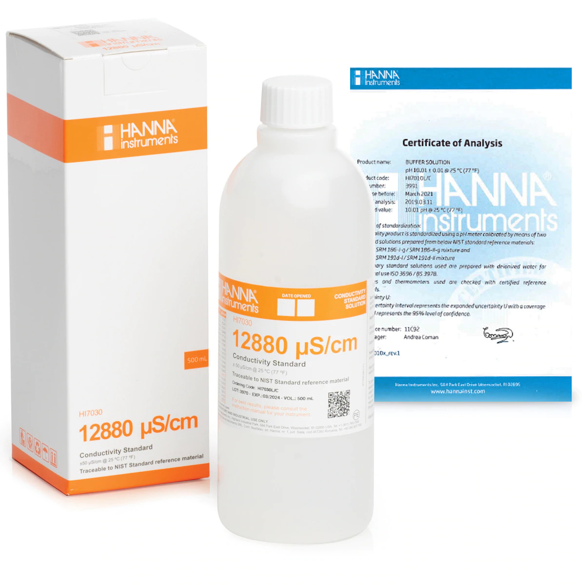Tổng quan sản phẩm Dung Dịch Hiệu Chuẩn Độ Dẫn 12880 µS/cm (500mL) Hanna HI7030L