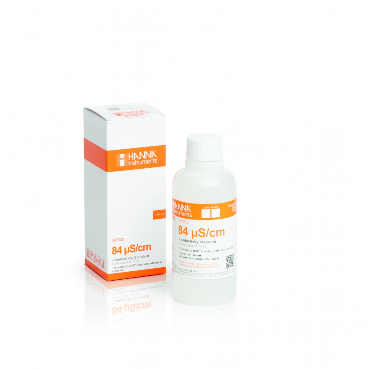 – HI7033 là một dung dịch hiệu chuẩn 84 µS/cmchất lượng cao được sản xuất theo tiêu chuẩn ISO 3696/BS3978 với muối tinh khiết cao, nước khử ion, và thủy tinh loại A trong môi trường kiểm soát nhiệt độ theo dõi với nhiệt kế đã được chứng nhận. Giá trị được báo cáo theo Tài liệu tham khảo tiêu chuẩn NIST (SRMs).